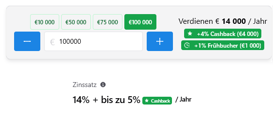 - Hohe Zinsen + Cashback