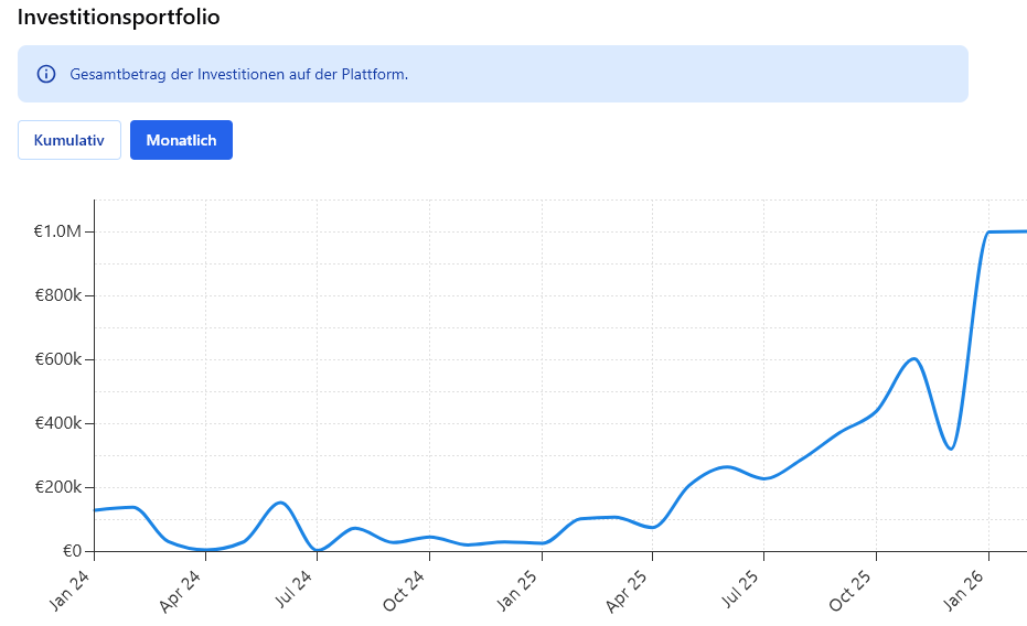 Im Januar und auch im Februar 2026 konnte Stock.estate die Millionengrenze an neuen Investitionen knacken.