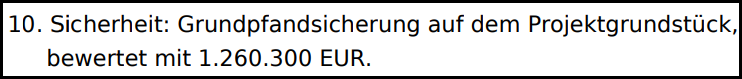 Bei dem Krankenhausprojekt handelt es sich um einen besicherten Kredit. Ich habe mir den Vertrag genauer angesehen. Im Vertrag wird auch unter Punkt 10 die Sicherheit bei diesem Projekt die Grundpfandsicherung auf dem Grundstück mit einer Bewertung von 1,26 Mio. € eingetragen.