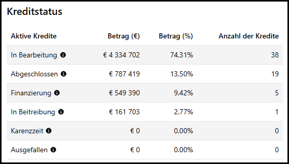 Auch falls der Kredit in Verzug gerät, werden höhere Zinsen fällig. Dann erhalten Anleger 2 % mehr Zinsen pro Jahr.