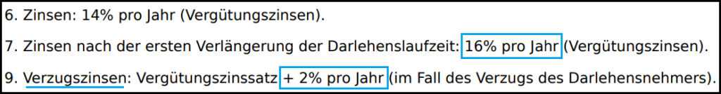 Ebenfalls im Vertrag enthalten sind die Verzugszinsen, falls die Raten oder die Endzahlung nicht bezahlt werden.