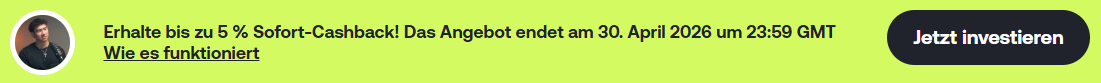 Bis zu Bis zu 5 % Sofort-Cashback auf alle Investments für alle Anleger bis zum 30.04.2026.