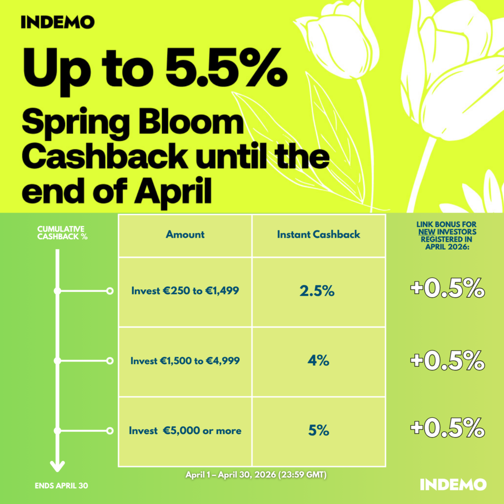 Neue Anleger, die im März 2026 bei Indemo investieren, erhalten 5,5 % Bonus auf alle Investitionen (Ab 5.000 € Gesamtinvestment), wenn sie sich über diesen Werbelink anmelden: www.Indemo.eu*