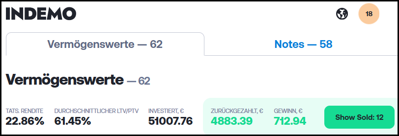 Ich bin sehr gespannt, wie sich die Renditen weiterentwickeln und ob Indemo weiterhin so gute Renditen für Anleger erzielen kann. Sollte sich die Rendite dauerhaft unter 15 % einpendeln oder das Risiko deutlich erhöhen, würde ich mein Investment entsprechend reduzieren.