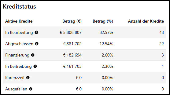 Insgesamt habe ich 15.000 € auf 4 verschiedene Projekte aufgeteilt und habe damit mein erstes Portfolio-Ziel erreicht.