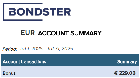 Bei Bondster habe ich an der Nera Cashback Aktion teilgenommen. Es gab 1,5% Cashback für Investitionssummen über 10.000€. Außerdem gab es 1% Bonus auf neue Einzahlungen.