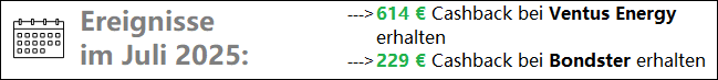 Im Juli 2025 gab es zu den normalen Zinsen bei Ventus Energy* noch 614 € zusätzlich als einmaliges Cashback. Denn ich habe 12.000 € neu bei Ventus Energy eingezahlt und investiert. Dadurch habe ich automatisch an der 5% Cashback-Aktion mitgemacht. Insgesamt hatte ich im Juli 12.280 € investiert.