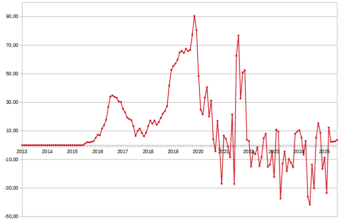 Nach den ersten 7 Monaten des Jahres 2025 stehe ich bisher bei 19,0% Rendite pro Jahr. In der Regel kann ich in der ersten Jahreshälfte eine bessere Rendite erzielen als in der zweiten Jahreshälfte. Deswegen denke ich das die Rendite bis zum Jahresende noch etwas fallen wird.