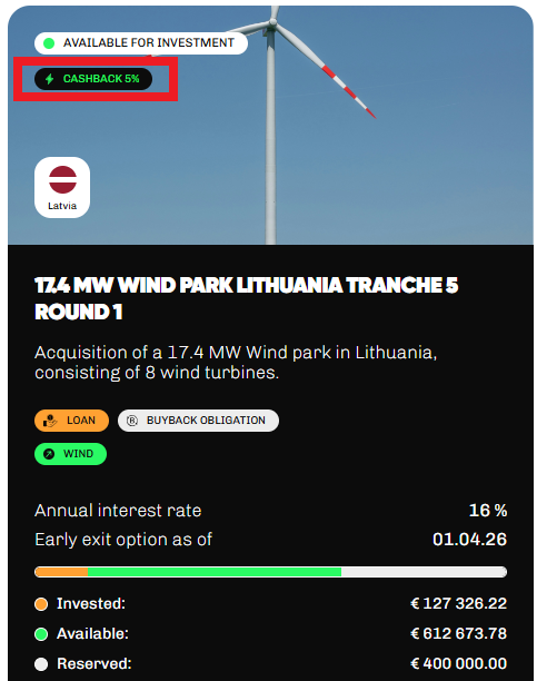 Wer auch wie ich in Energieprojekte bei Ventus Energy investieren will, bekommt über meinen Link* noch 1% zusätzliches Neukunden Cashback für die ersten 60 Tage nach der Registrierung. Es lohnt sich also gleich in den ersten 2 Monaten mehr zu investieren.