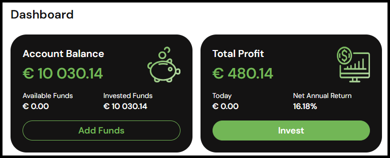 Ich habe mich auch über einen Werbelink angemeldet und habe somit insgesamt 5 % Bonus auf alle meine Investments erhalten.