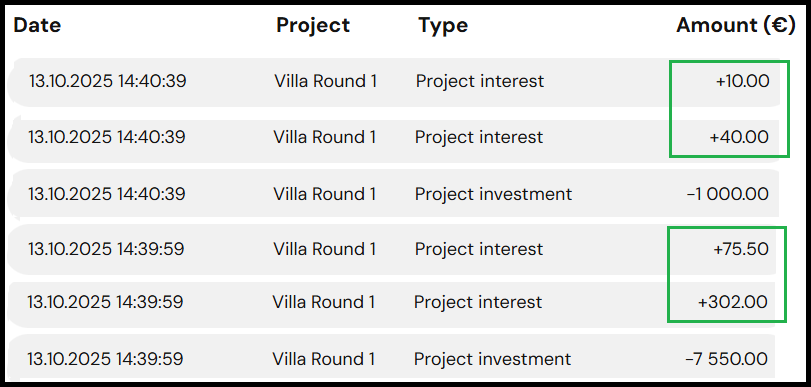 • Am 13.10.2025 habe ich weitere 8.550 € eingezahlt und investiert