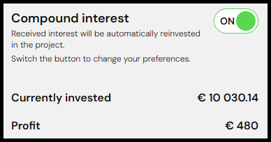 • oder sie werden direkt wieder in dasselbe Projekt reinvestiert durch die „Compound Interest“ Funktion.