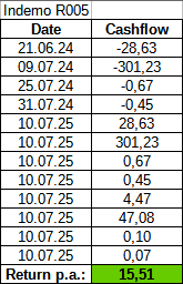 Die bisher schlechteste Rendite bei Indemo war bei dem Investment R005.