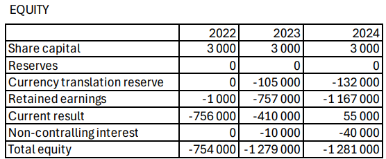 Das Eigenkapital ist aufgrund der schnellen Expansion weiterhin negativ; 2024 lag es praktisch unverändert bei −1,28 Mio. € und ist nicht weiter angestiegen: