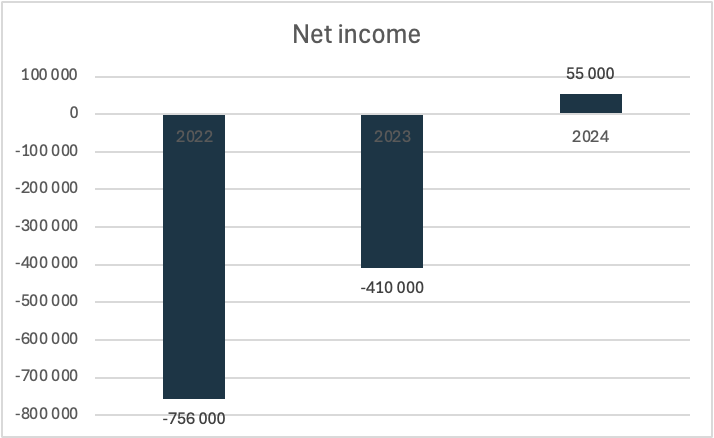 Im Jahr 2024 konnte erstmals ein Nettogewinn von 55.000 € erzielt werden. Damit ist die Hive5 Gruppe profitabel geworden. In den ersten beiden Jahren waren noch höhere Verluste zu verzeichnen (2022: -0,76 Mio. €, 2023: -0,41 Mio. €), durch hohe Einmalkosten, die bei jedem Kreditunternehmen am Start anfallen.