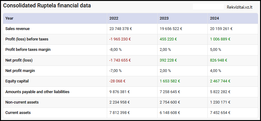 Quelle: Rekvizitai.vz.lt (Seite zu Ruptela, Umsätze)