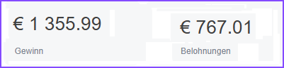 Die Belohnungen stammen aus dem Loyalitätsprogramm und Cashback-Aktionen. Der Gewinn besteht aus den normalen regelmäßigen Zinsen.