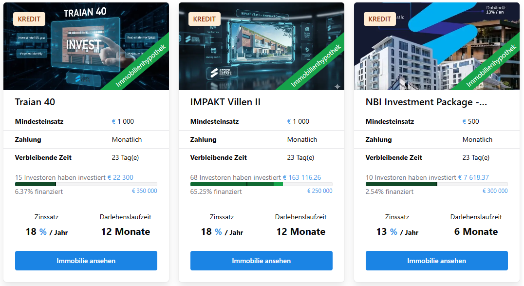 Stock.estate ist keine neue Plattform. Bereits im November 2023 – also vor über zwei Jahren wurden bereits die ersten Investitionen getätigt.
