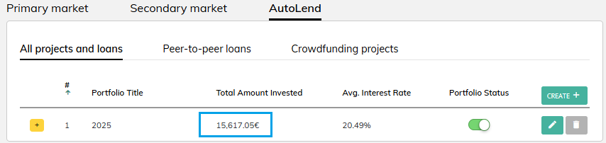 Inzwischen wurden 15.600 € alleine über meinen AutoLend investiert. Die Zinsen sind von 20,37 % im Vormonat jetzt auf 20,49 % gestiegen, weil der AutoLend mehr in Kredite mit Rating D investiert hat.