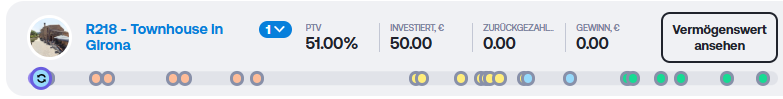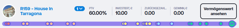 Indemo gibt die durchschnittliche Rendite bei diesem Vermögenswert für alle Anleger mit 15,3 % pro Jahr an. Nicht alle Anleger erhalten die gleiche Rendite. Es kommt darauf an, wann investiert wurde und in welcher Phase sich der Vermögenswert zu diesem Zeitpunkt bereits befand.