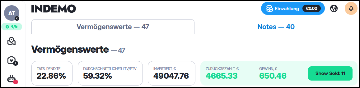 Ich habe mein Portfolio-Ziel bei Indemo erreicht und erwarte in den nächsten Monaten weitere Rückzahlungen. Bei bereits 47 Schuldverschreibungen kann ich schon demnächst fast monatliche Rückzahlungen erwarten.
