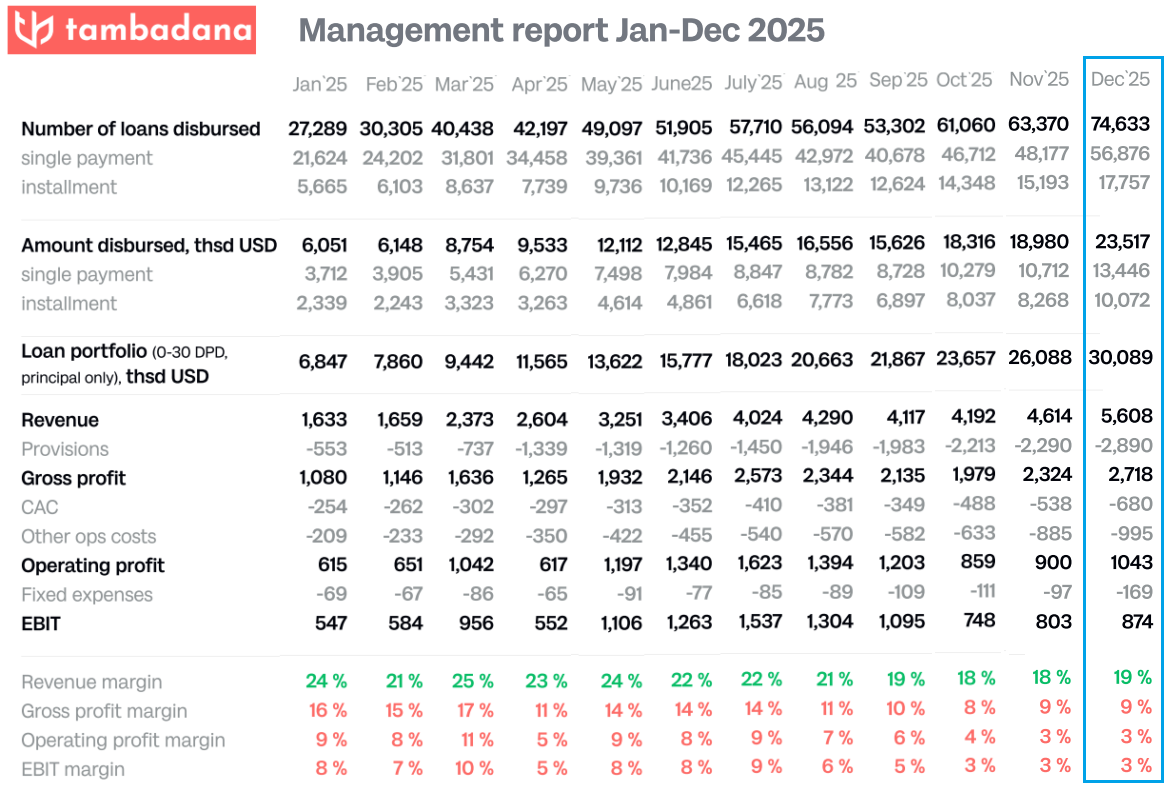 Darlehensgeber Tambadana: Die Umsatzmarge verbessert sich leicht auf 19 %